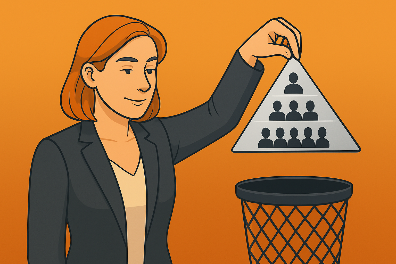 Let’s first start with some context. Large orgs have traditionally been slow and cumbersome (the pyramid grew too fat). The answer? Systematically remove middle management. “The great flattening” trend would help accelerate decision-making, while eliminating costs (improving revenue/employee).
